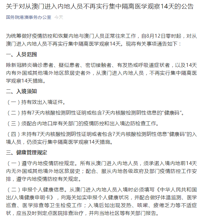 对于来自低风险地区的人员,只要持有健康证明且没有确诊病例、疑似病例接触史,来长后不进行集中隔离和居家隔离。高风险地区回来的人员需在入我省内之日起集中隔离14天,然后进行入中出分三次进行核酸检测。中风险地区人员需居家观察隔离14天,在结束时期做一次核酸检测。低风险地区不再进行居家或集中隔离。